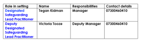 5.3 The Designated Safeguarding Lead/Deputy Practitioner should be used as a first point of contact for concerns and queries regarding any safeguarding concern in our organisation.
